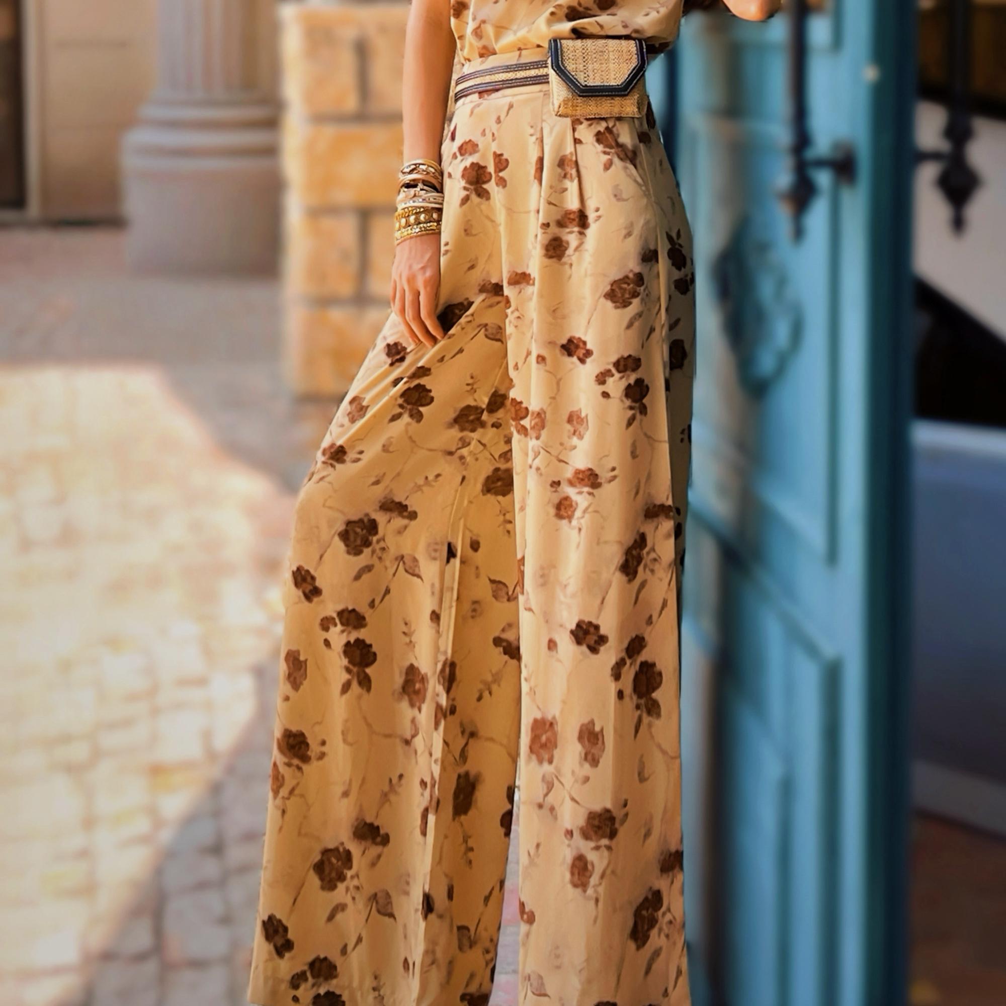 Floral Palazzo Pants – High Waist Cotton Wide Leg Relaxed Beach Brunch Outfit offer breezy comfort and vintage floral charm, perfect for stylish summer beach outings and casual wear. These high waist cotton palazzo pants feature a relaxed fit that flatters your silhouette while providing all-day ease with breathable natural fiber fabric. Crafted from premium breathable cotton, these pants ensure lightweight, airy comfort for warm-weather days.