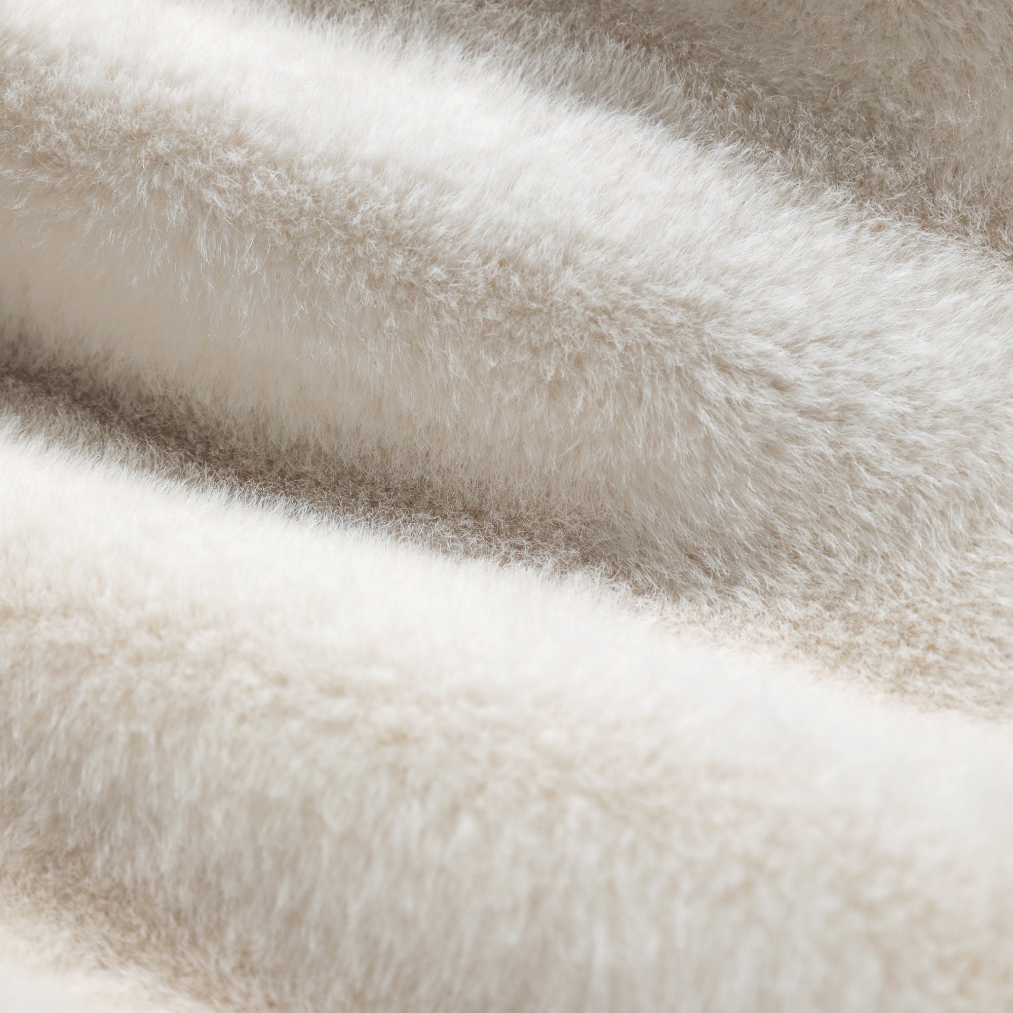 Care: Dry clean recommended; store on wide hanger; avoid high heat; expect minimal initial shedding typical of faux-fur pile